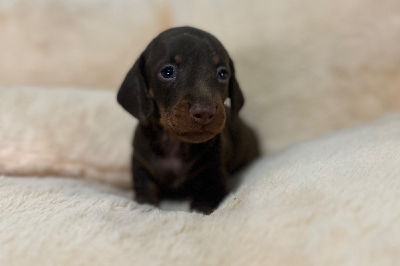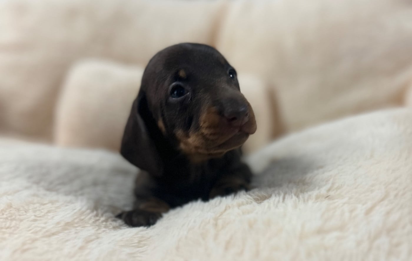 Splendide petite femelle chocolat et tan à poil ras. Issu d'un très beau mariage entre marquise magnifique femelle toute petite kaninchen et mon petit Jack. Les Parents sont testés pour toute les maladies héréditaires de la race et sains. Plus d'informations vous pouvez me téléphoner au 0637040287: Rachel
